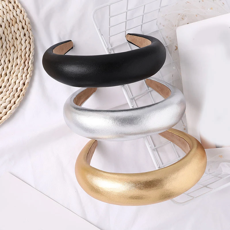 Сплошной цвет ПУ кожа губка широкая повязка на голову модные обручи для волос аксессуары для волос