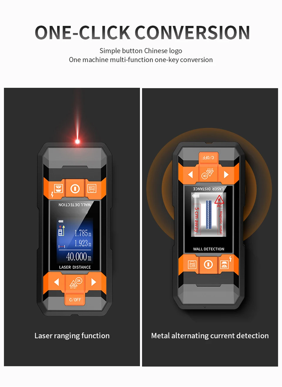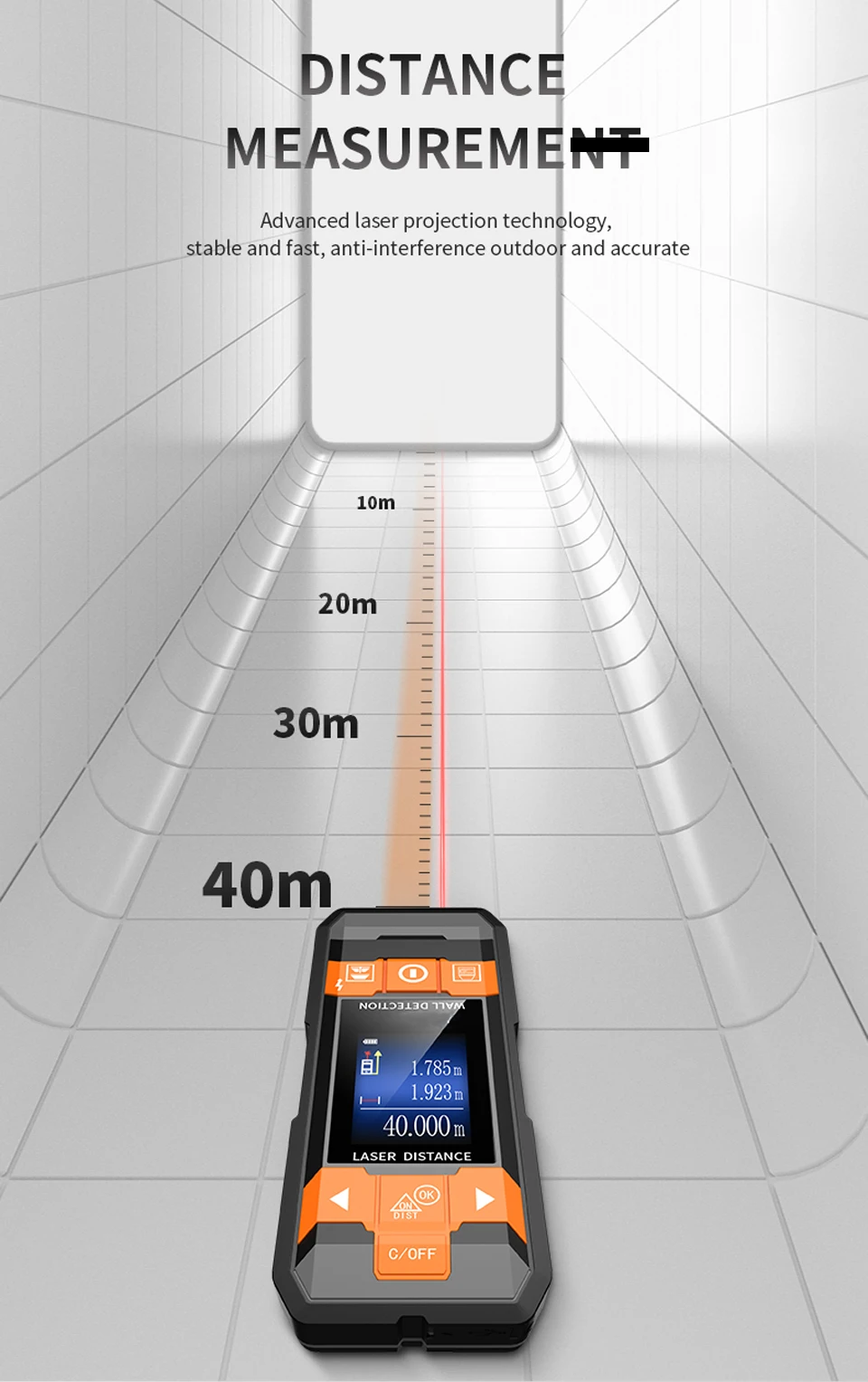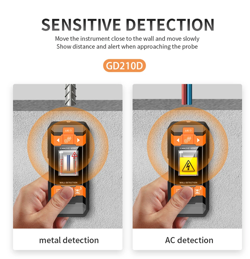 GVDA многофункциональные измерительные приборы могут обнаруживать металлы (стальной стержень, медные трубы) и кабели, скрытые в стенах, потолке и полах; Металл, кабель, дерево, etec uner гипсокартон, als он может измерять длину, площадь, объем дома с помощью лазера, измерения добавления и вычитания, измерение по пифагору, etdc.