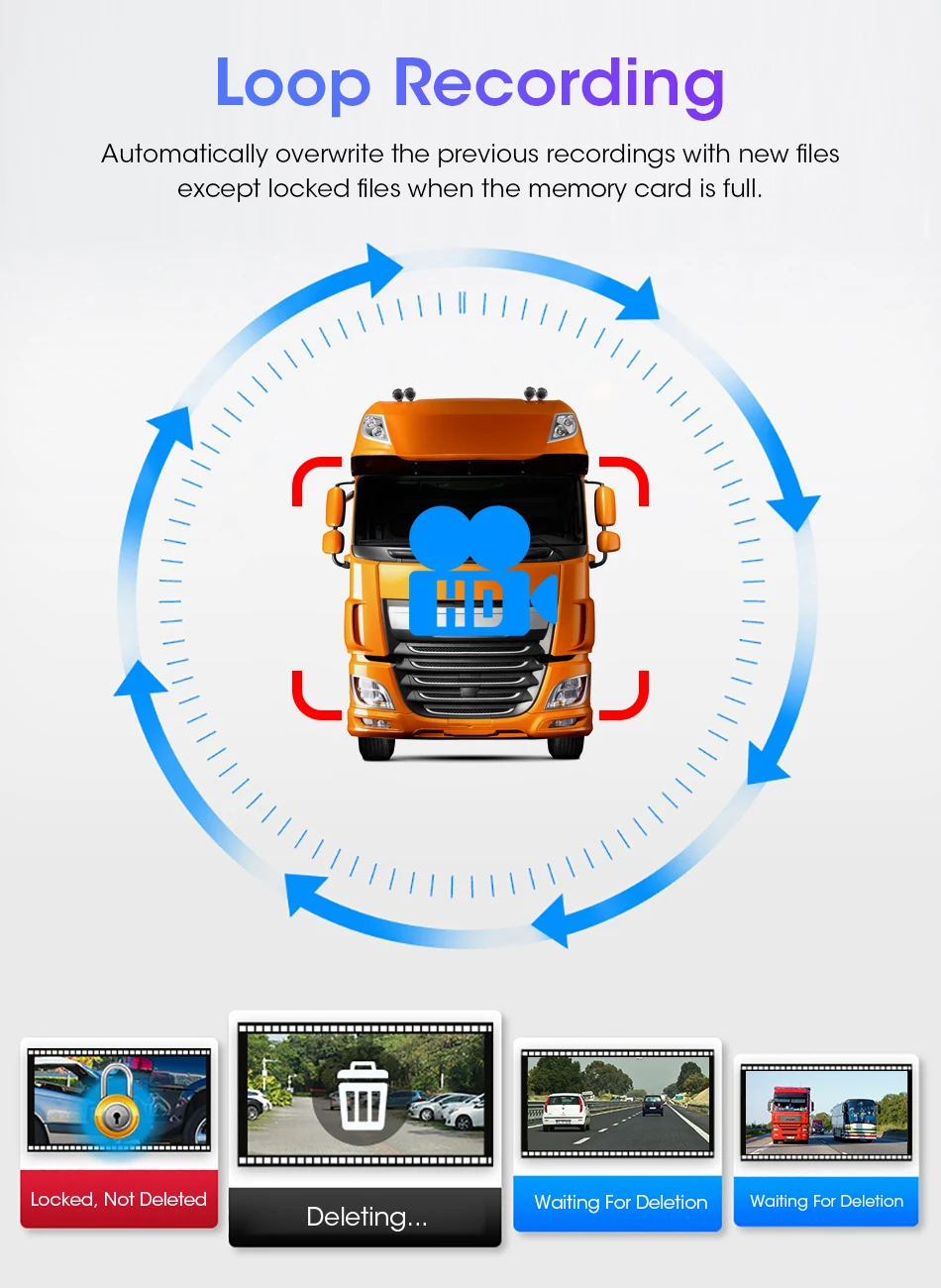 Циклическая запись гарантирует, что ваша камера не прекратит запись, когда Хранилище заполнено. Камера автоматически перезаписывает самые старые файлы на карте памяти.