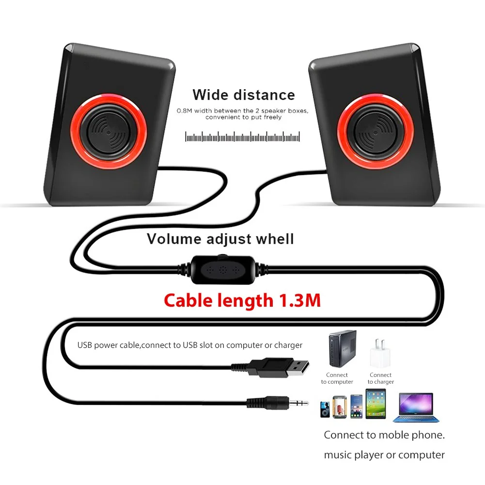 1 пара мультимедиа-объемный звук стерео бас USB проводные колонки для ПК ноутбука