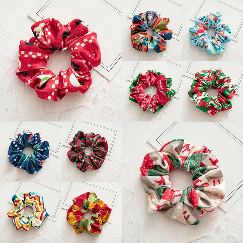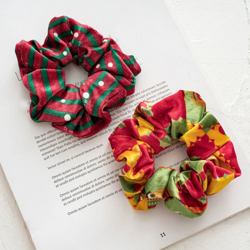 Аксессуары для волос на Рождество резинки рождественские геометрические принты эластичные резинки для волос держатель для конского хвоста бархатная пряжа для волос фланелевые резинки для волос