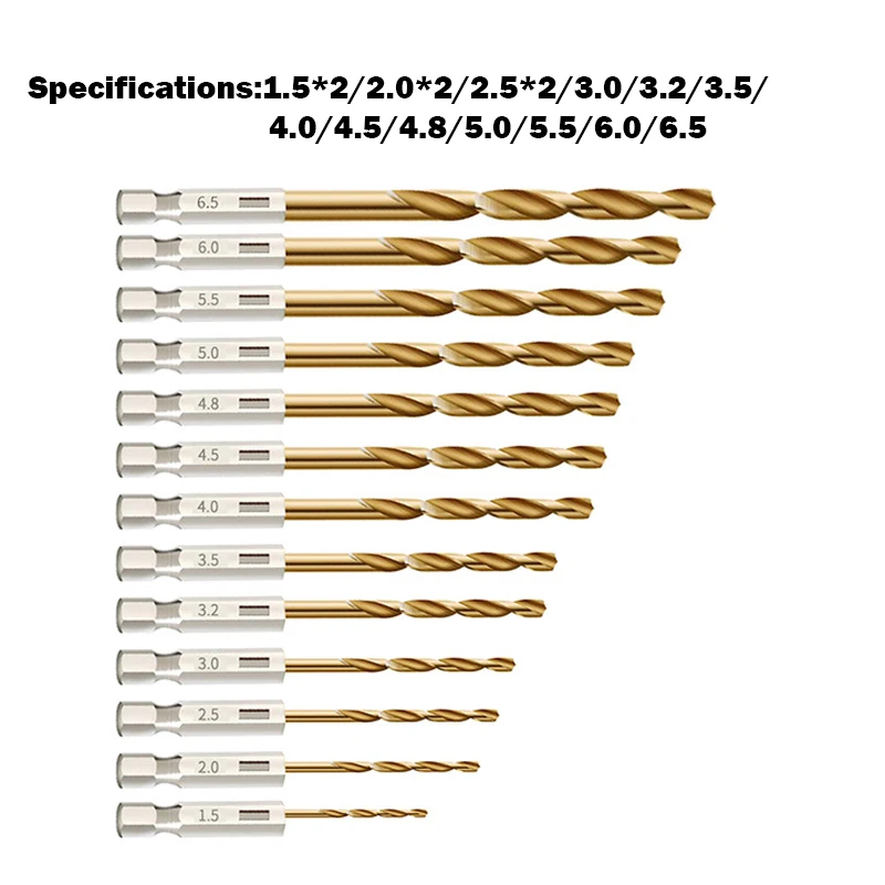 Размер сверла: 1,5 мм, 2 мм, 2,5 мм, 1,5 мм, 2 мм, 2,5 мм, 3 мм, 3,2 мм, 3,5 мм, 4 мм, 4,5 мм, 4,8 мм, 5 мм, 5,5 мм, 6 мм, 6,5 мм