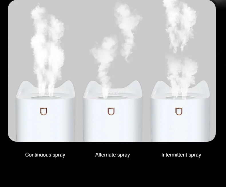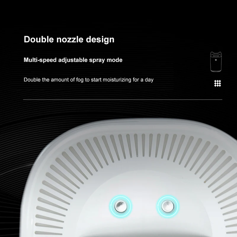 3: двойные насадки, двойные насадки, больше и больше объема распыления, легко увлажняет всю комнату.