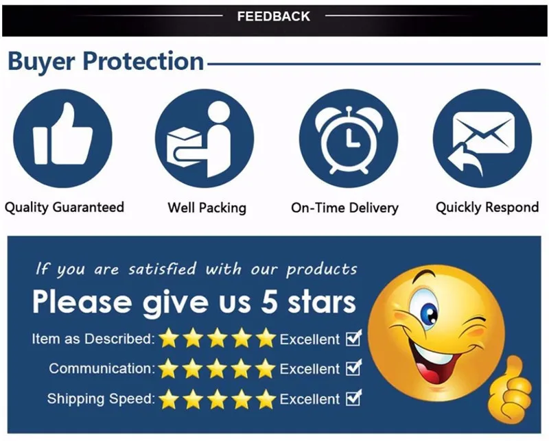 Положительные отзывы высоко оценены и будут даны в ответ. Если покупатель намеревается оставить негативные отзывы любого вида, пожалуйста, сначала свяжитесь со мной, чтобы я мог попытаться решить эту проблему.