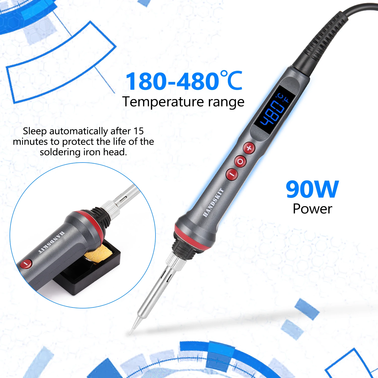 Спите автоматически через 15 минут, чтобы защитить срок службы головки паяльника.