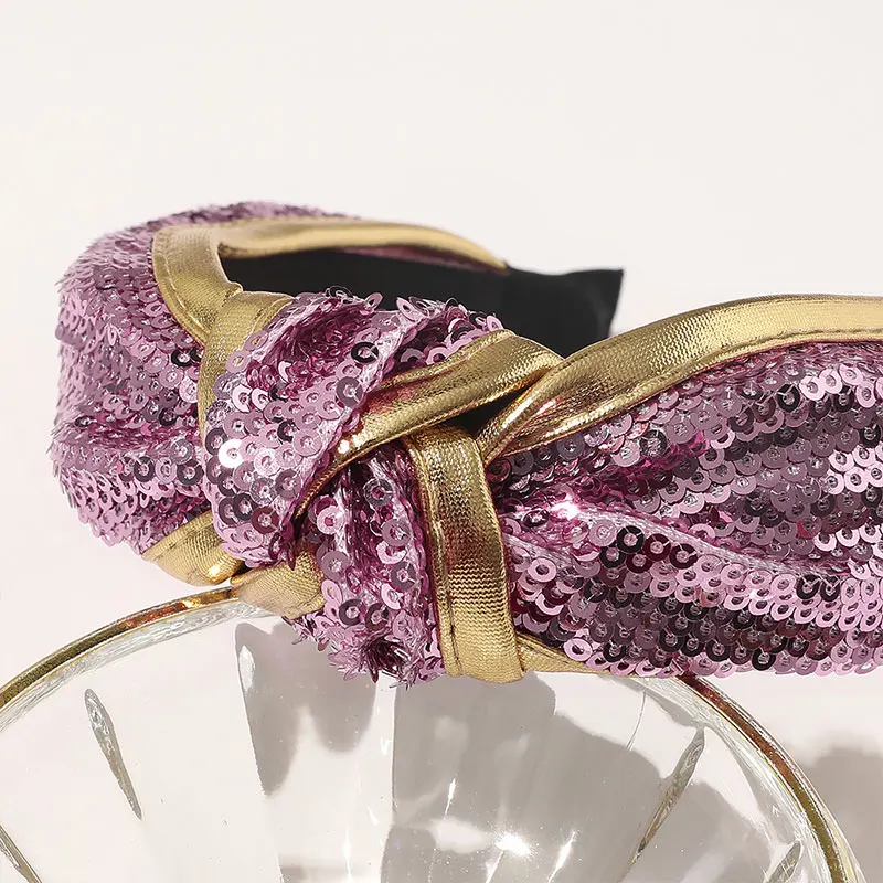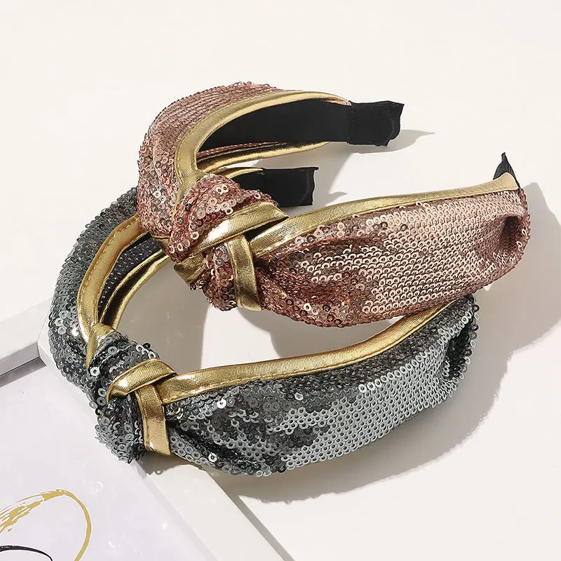 Обруч для волос с золотыми краями, однотонный обруч для волос с блестками, аксессуары для волос, повязка на голову со средним узлом для макияжа, широкая повязка на голову, тюрбан