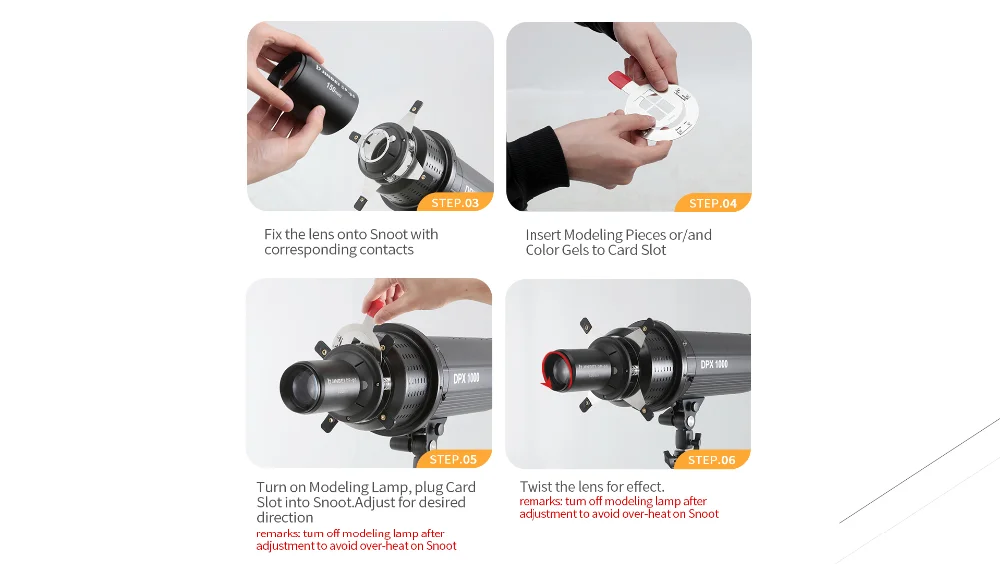 DP-Φ6 фокусировки тубус осветительного прибора Один шаг для формирования и окраски Светильник с оптическим зумом и тени, виртуальный или реальный Bowens Mount 8 Моделирование штук Различные светильник эффекты