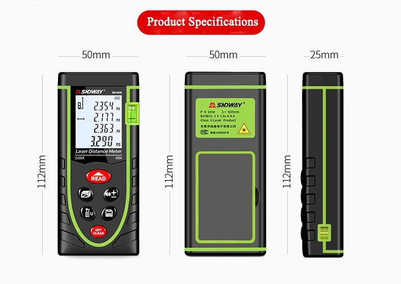 SNDWAY ручной лазерный дальномер Высокоточный Инфракрасный измерительный прибор лазерный дальномер