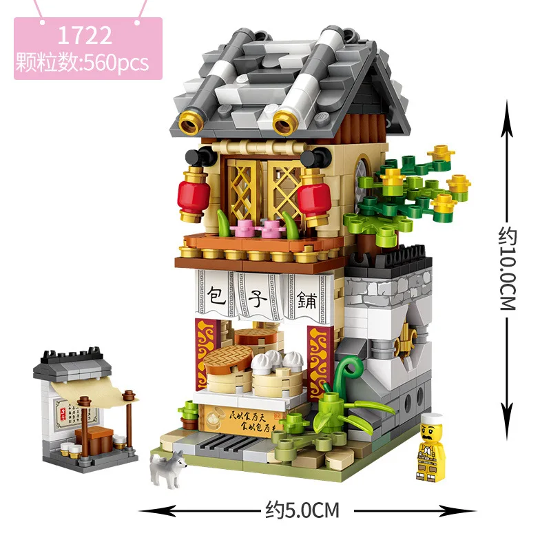 LOZ Creatored Mini Street View China Street Bun Shop Ломбард бистро Blacksmith Shop строительные блоки игрушки для детей Подарки