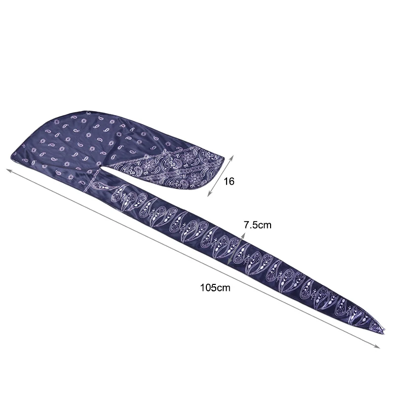 Материал: полиэстер Размер: свободный размер подходит взрослым, длина ремешка 105 см Цвет: как на картинке Посылка: 1 штука durag с OPP мешком