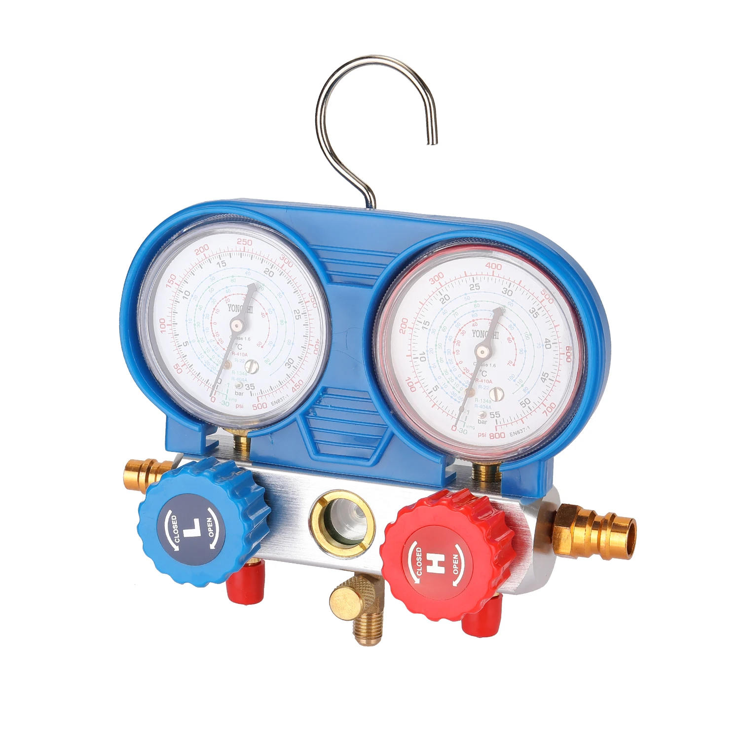 Это своего рода Профессиональный манометр для измерения давления В холодильном оборудовании. Сменные клапаны поршневого типа обеспечивают превосходное уплотнение. И манометр высокого давления, и Манометр низкого давления поддерживают для индикации к zeropoint. Манометры отмечены шкалами температуры и давления или оснащены взаимозаменяемыми шкалами хладагента. Вы можете попробовать.