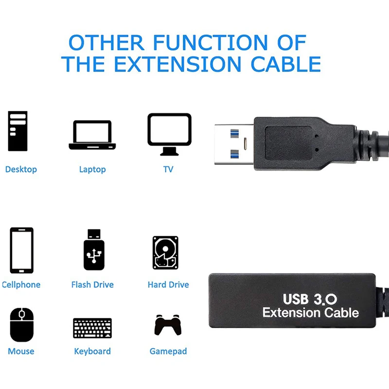 Стабильная передача данных: удлинительный кабель поставляется с чипом релейного усилителя, который позволяет передавать данные на большое расстояние (8 м) без потери сигнала.