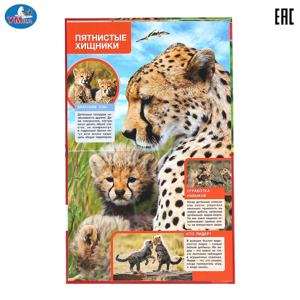 А вы знали, как выглядят грозные хищники, когда они совсем маленькие? Как родители учат своих детёнышей охотиться и защищаться? Обо всём подробно можно узнать из этой энциклопедии. Увлекательные задания и яркие картинки помогут лучше усвоить информацию.