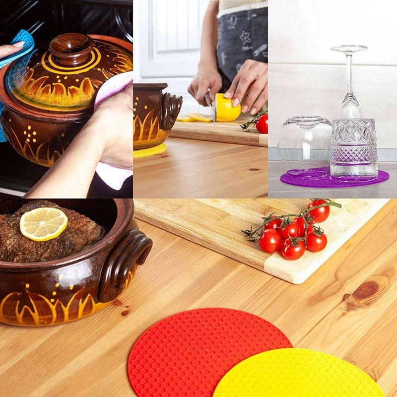 Многоцелевой-безопасно Положите Горячие горшки на ваш стол/платформу без осыпания поверхности (новый-Возраст trivet), используйте его вместо митенок для хранения горячих кастрюль, открыть плотные крышки банки, положите ложки для готовки или зубчики для чеснока в раковину с силиконовыми держателями для горшков-Изящные Силиконовые горячие подушечки