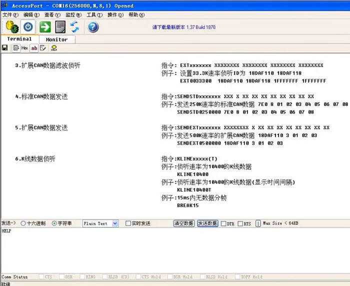 OBDInterface анализатор представляет собой интегрированный анализатор и комплексные продукты линейного анализатора, предназначен для разработки инструментов производства, например, закрытия окна или окна заблокированного устройства, компьютера, удаленной диагностики автомобиля и других продуктов. Автоматическая идентификация скорости и двойная фильтрация rateID. Удаленное состояние, состояние транспортного средства, анализ различных автомобильных условий обеспечивает удобство,В то же времяПоддержка monglineCANListen. Поддержка двусторонней передачи. Линейный анализ KThe, может быть полностью отображен протоколом kwp2000, одноточечным протоколом и т. д. для данных может быть представлен временной интервал между байтами и пакетами данных. Так как протокол writeKLine обеспечивает мощную поддержку данных, обеспечьте стабильность разработанной продукции.