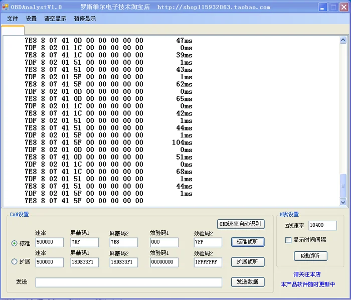Связь данных KLine, временной интервал предназначен для usOBDProducts, обеспечивает строгую справочную информацию по времени, обеспечивает стабильность продукта.