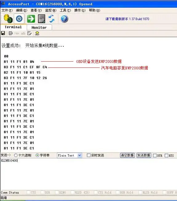 4. Перехват данных KLine. ISO14230 KWP2000Data предыдущие данные-это процесс активации адреса. 55 коэффициент обнаружения KW1 KW2 KW2Inversion70Hitachi автомобильные системы, автоматическая репликация подтвердите успех активации!