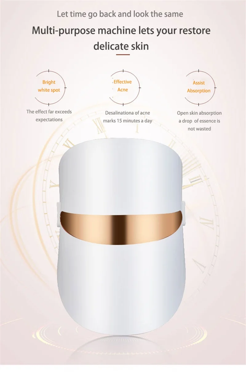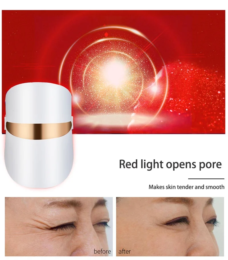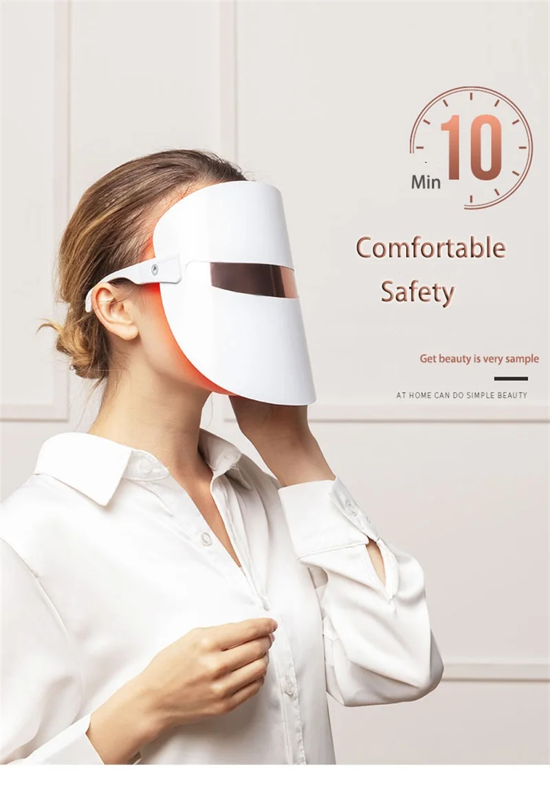 3 Colors LED mask can solve stubborn skin problems. example heal acne and repair the acne scar.