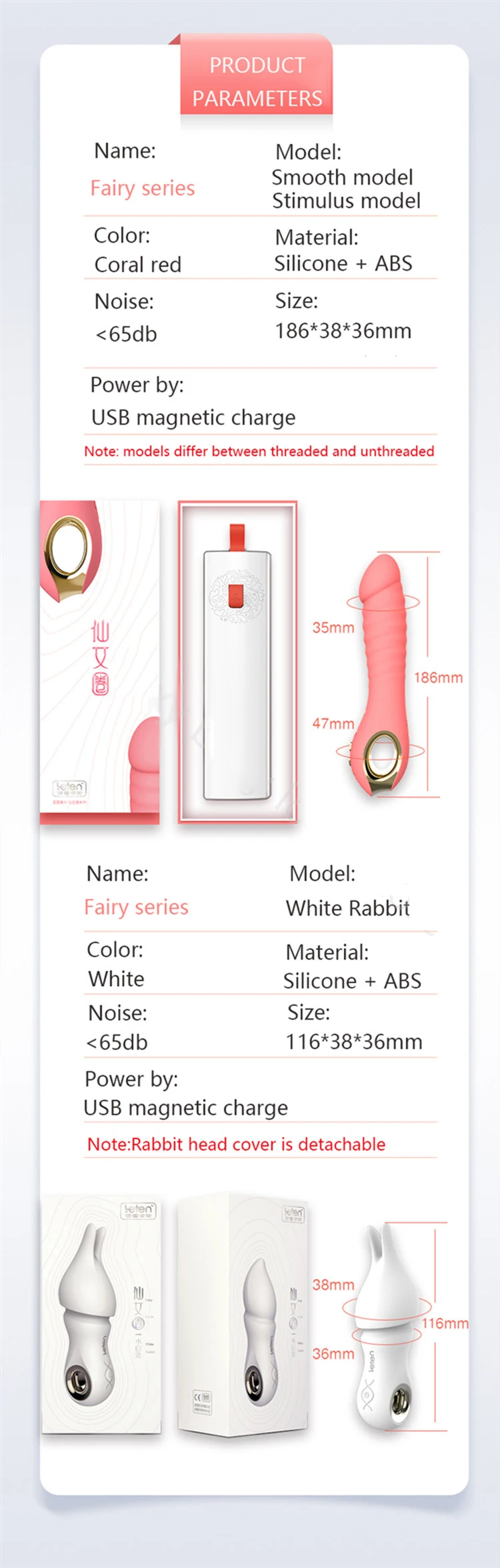 1.Smooth model:Smooth and silky, thrust and gentle collision give you a different kind of mixed feeling 2.Stimulus model:Thread stimulation with the fast pace of thrusting, double the pleasure orgasm 3.White Rabbit:Rabbit head cover is detachable.No heating