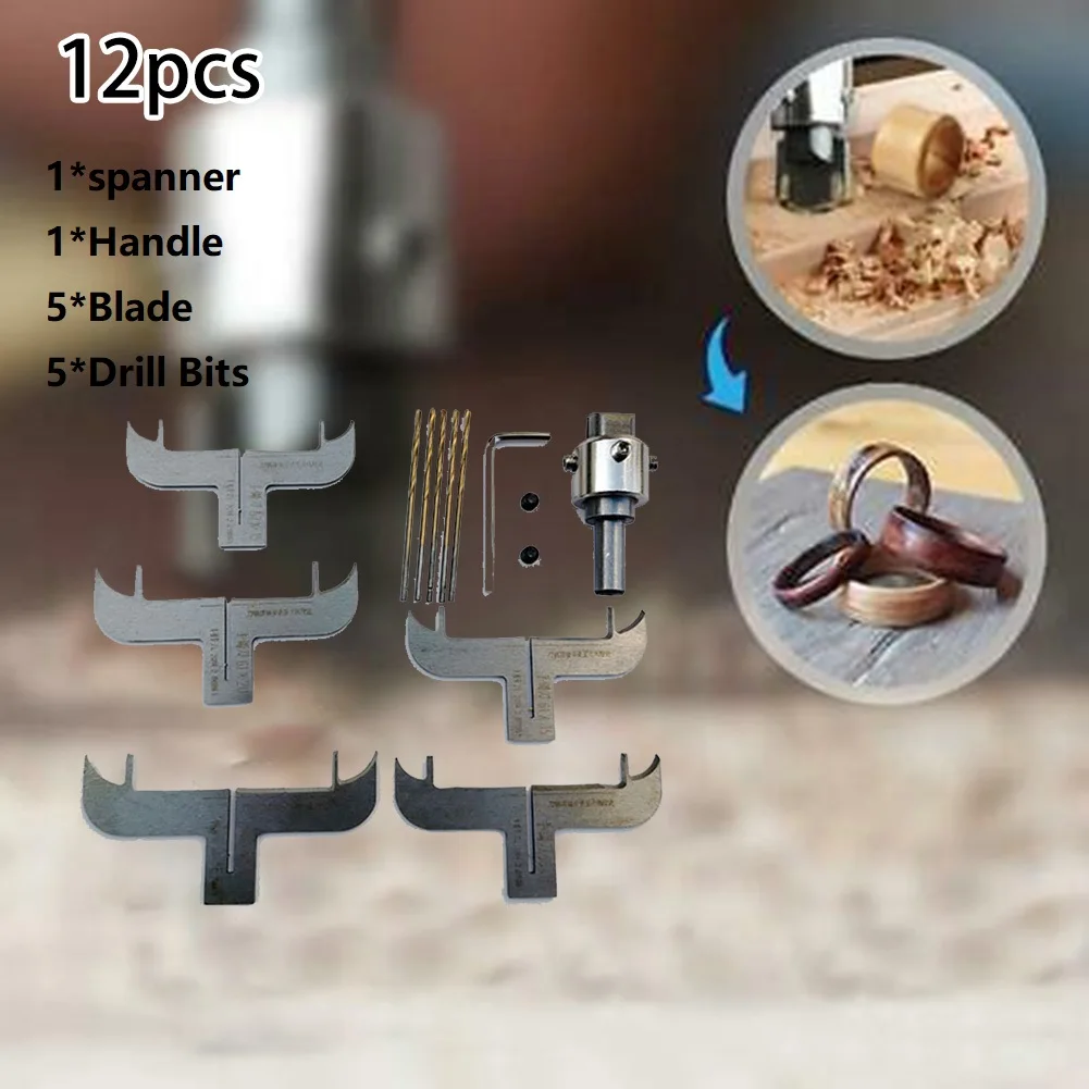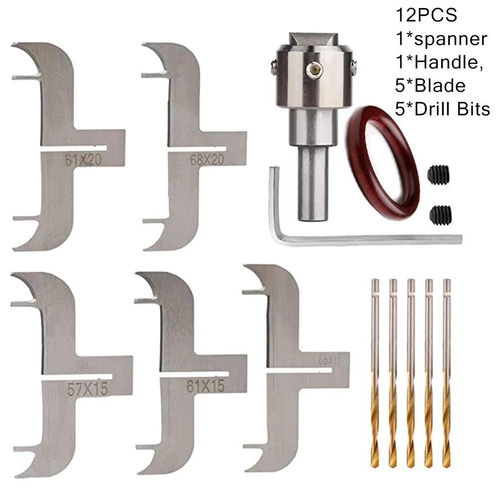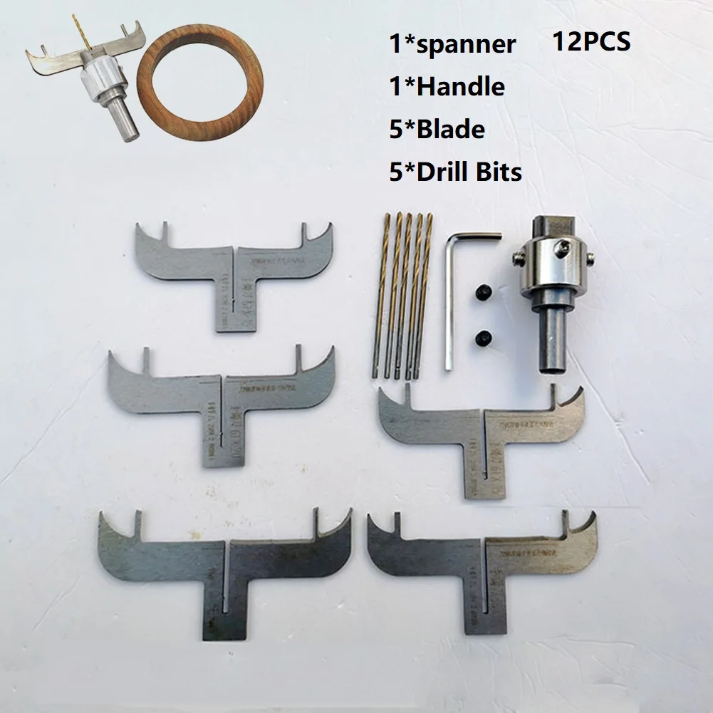 1*12 шт Набор для изготовления деревянных браслетов (1 * гаечный ключ, 1 * ручка, 5 * лезвие, 5 * сверла)