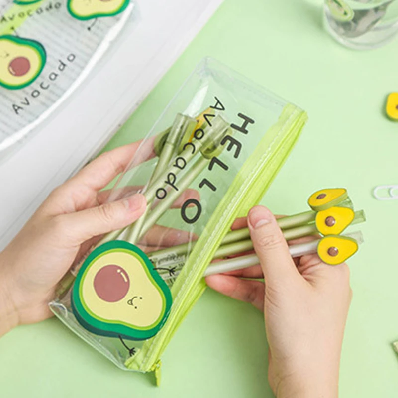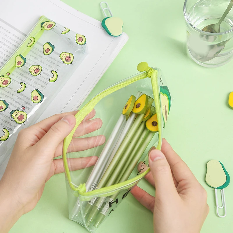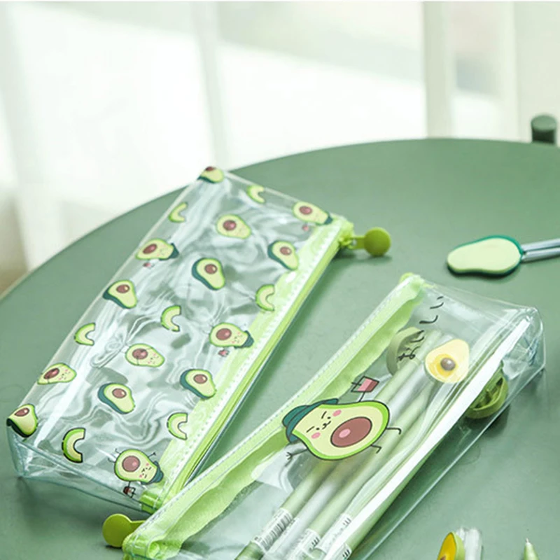 Кавайный чехол для карандаша, милый подарок авокадо, школьный пенал, прозрачная косметичка