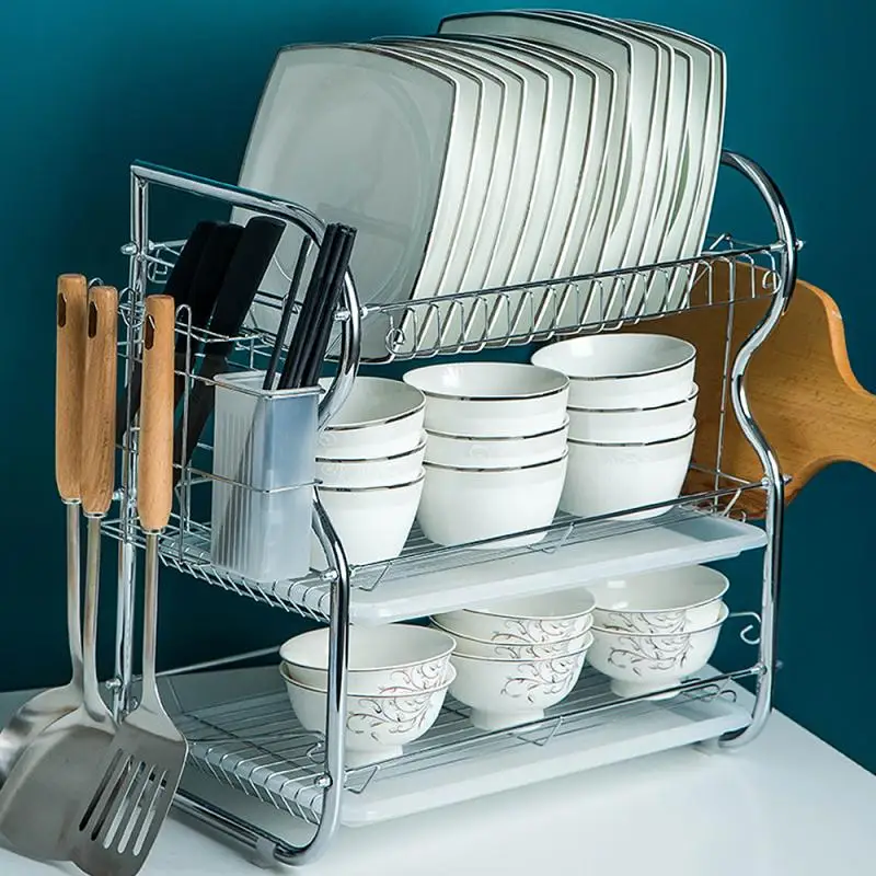 Стеллаж для хранения 3 сушилка для посуды со слоем из нержавеющей стали художественные кухонные столовые приборы дренажная посуда органайзер устойчивые к коррозии тарелки полка HWC