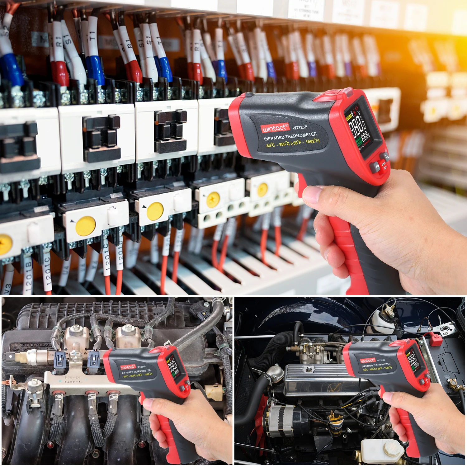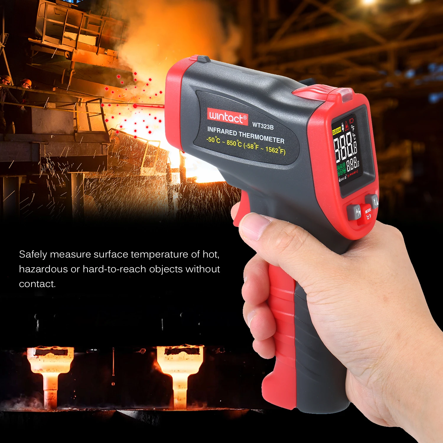 Wintact-50 ℃ ~ 850 ℃ инфракрасный термометр профессиональный промышленный термометр с термопарой типа K ручной ИК-термометр Бесконтактный цифровой лазерный термометр Температурный тестер