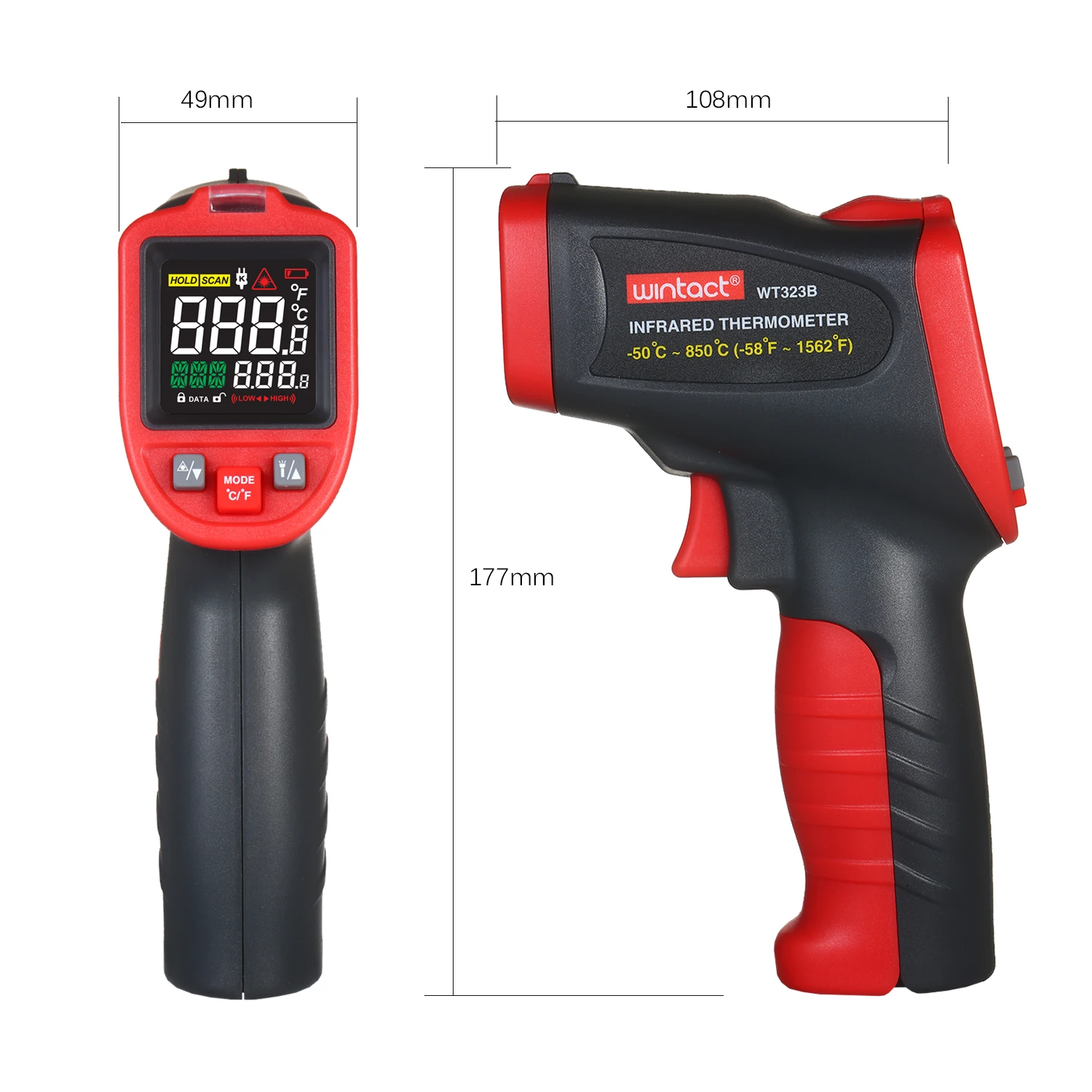Wintact-50 ℃ ~ 850 ℃ инфракрасный термометр профессиональный промышленный термометр с термопарой типа K ручной ИК-термометр Бесконтактный цифровой лазерный термометр Температурный тестер
