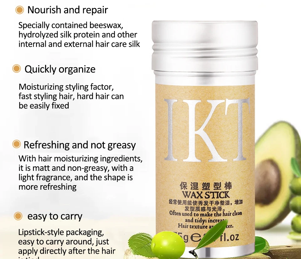 1. Основным ингредиентом восковых палочек для волос являются натуральный пчелиный воск, масло семян Кастора и дикая краска фруктовый воск и т. д.