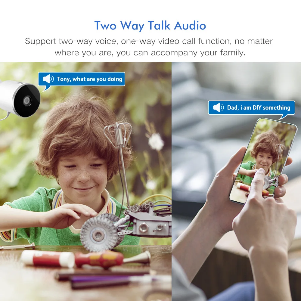 2. Поддержка двустороннего голосового домофона, будильника, управления PTZ и записи в реальном времени на мобильный телефон;
