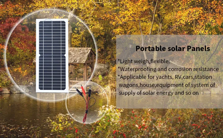 1x10 Вт Гибкая солнечная панель 1x кабель с зажимом типа крокодил