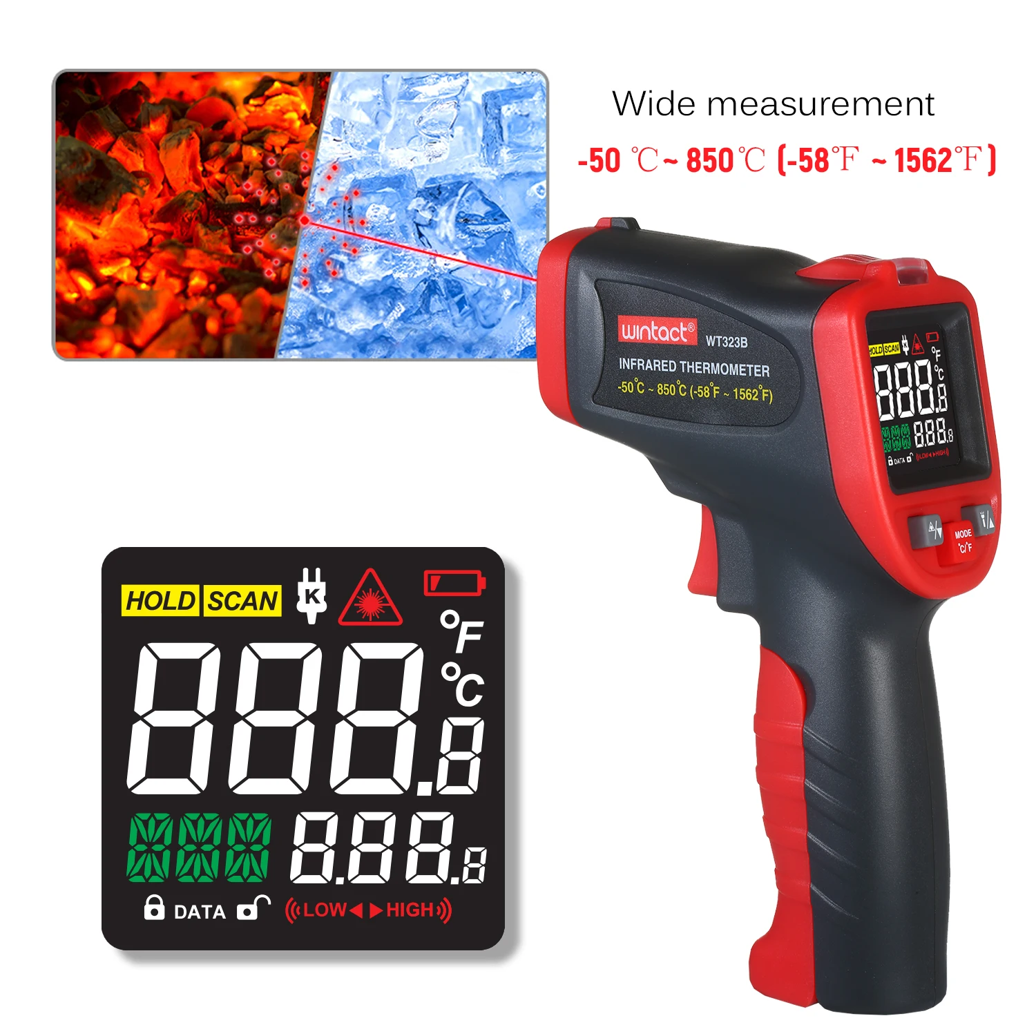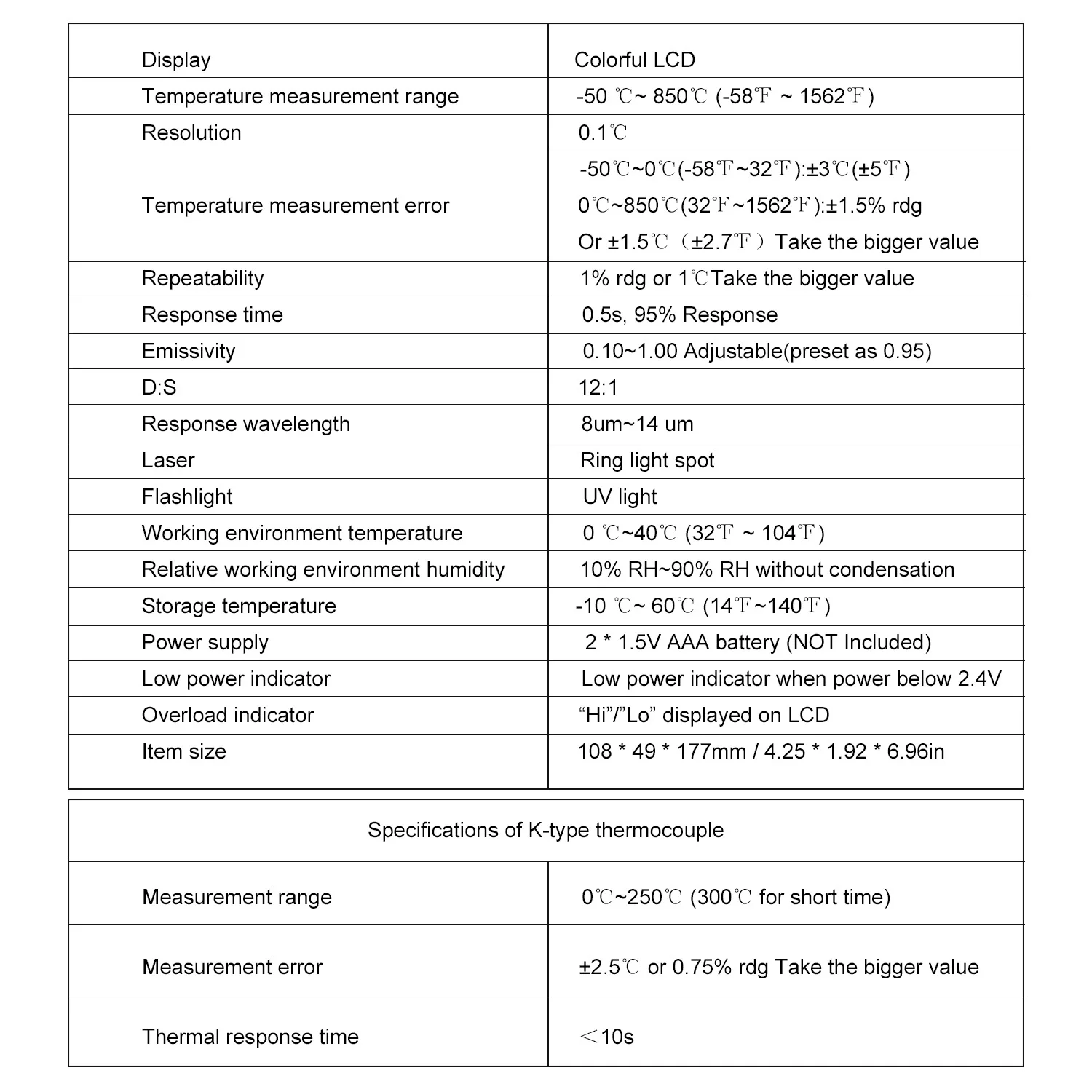 Диапазон измерения: -50 ℃ ~ 850 ℃(-58 ℉ ~ 1562 ℃)
