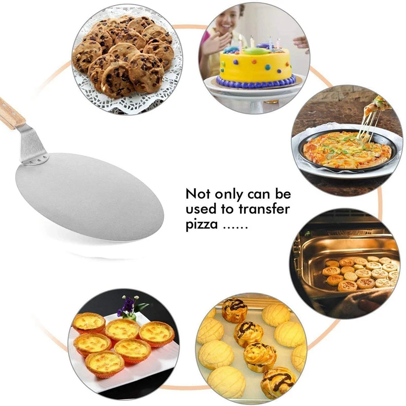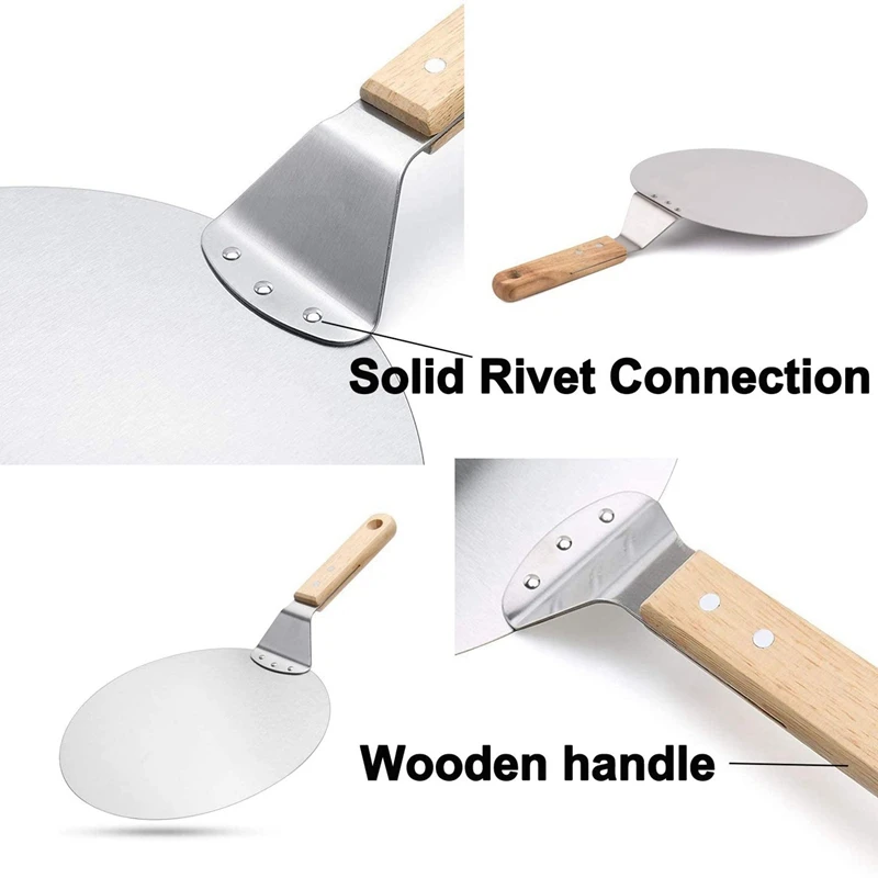 [Превосходное качество] кожура для пиццы Изготовлена из прочной нержавеющей стали и натуральной твердой древесины. Нержавеющая сталь для долгосрочного использования с твердыми заклепками, вместо легкой деревянной корки. И длинная деревянная ручка обеспечивает безопасность рук от жары, с легко висящим отверстием, легко моется и хранит.