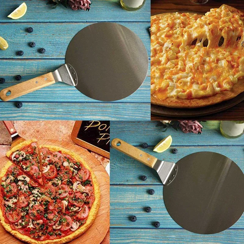 12-дюймовый нож для пиццы из нержавеющей стали и резак для Пиццы Набор с лопаткой, металлический круглый весло для пиццы с деревянной ручкой, лопатка для пиццы