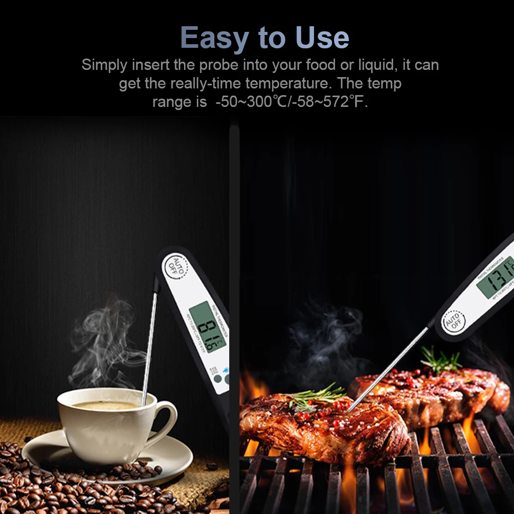 Наш термометр для мяса со складным зондом может следить за реальными температурами пищи или жидкости, вынимая догадки и устраняя чрезмерную или недожаренную еду, гарантируя, что вы получите лучший вкус, отличная кухонная принадлежность.