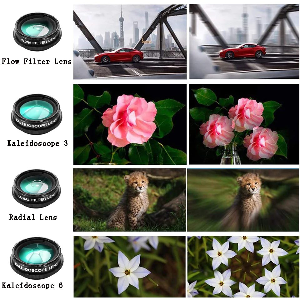 Информация о продукте Тип линз: Широкоугольный макро объектив 2-в-1 объектив * 1 Объектив «рыбий глаз» * 1 Объектив с круговым поляризационным фильтром * 1 Фильтры нейтральной плотности для объектива-звезды * 1 2X телеобъектив * 1 Радиальный объектив * 1 Фильтр-объектив * 1 Калейдоскоп 3*1 Калейдоскоп 6*1 Оптическое увеличение: Широкий угол: 120 градусов Макро: 20X Рыбий глаз: 198 градусов Телеобъектив: 2X Примечание: другие линзы относятся к серии фильтров и не говорят о росте Объектив Цвет: черный Материал корпуса: алюминиевый сплав Материал стекла: оптические линзы Подходящие модели: Универсальный мобильный телефон Посылка к товару: объектив * 9, универсальный зажим для подключения * 1, крышка объектива * 9 пар, руководство * 1, салфетка для очистки * 1, спортивная сумка * 1,