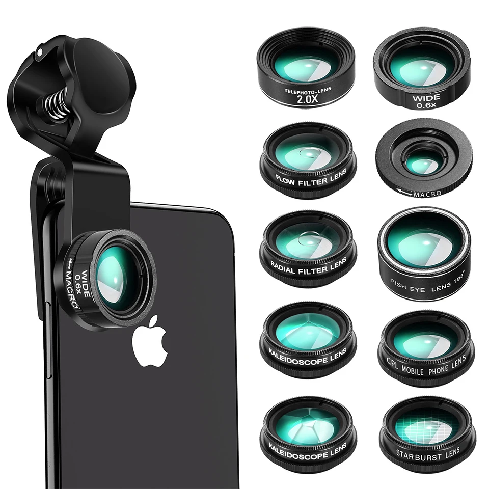 10 в 1 универсальный набор объективов для камеры телефона 20X Макро микро широкоугольный объектив рыбий глаз мобильный смартфон для Iphone 8 11 Pro Oppo