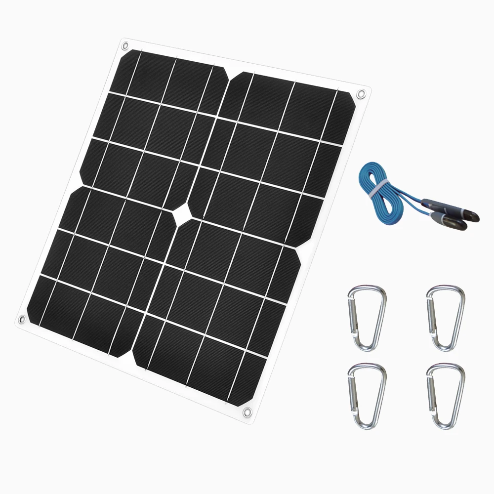 Выход USB: 5 В Напряжение солнечной панели: 6 В постоянного тока Материал: монокристаллическая Кремниевая ячейка Мощность солнечной панели: 30 Вт Подходит для: велоспорта, альпинизма, пешего туризма, кемпинга, путешествий и т. д.