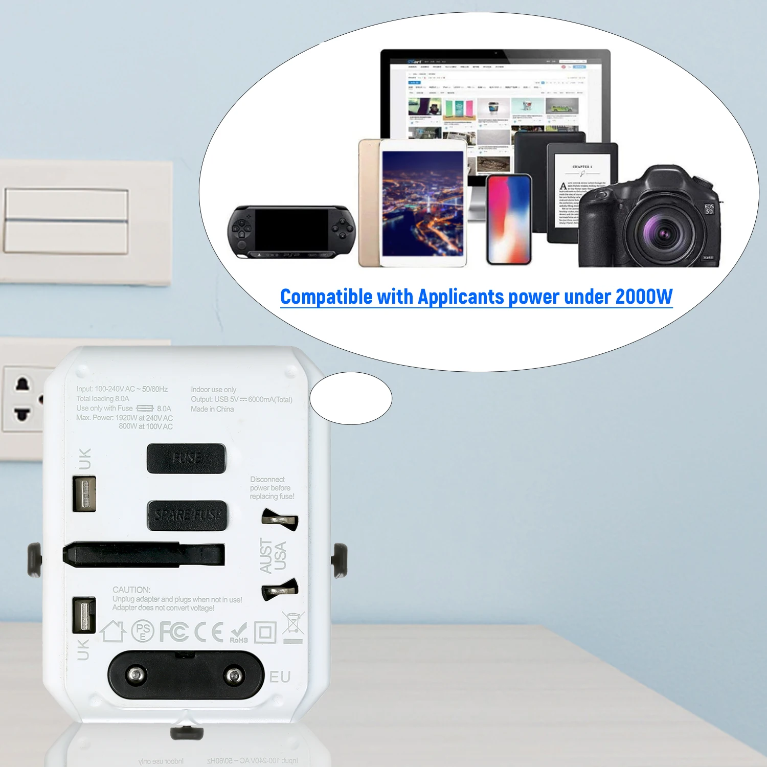 Универсальный популярный адаптер--- Все в одном по всему миру Универсальный адаптер для путешествий принимает вилки из более чем 150 стран с европейскими вилками США/ЕС/Великобритании/Австралии, такими как Таиланд, Новая Зеландия, Израиль, Италия, Россия, Рим, франция, Испания, Канада, Китай, Австралия, Индия, Гонконг, Аргентина, Перу, Корея, Азия и т. Д.