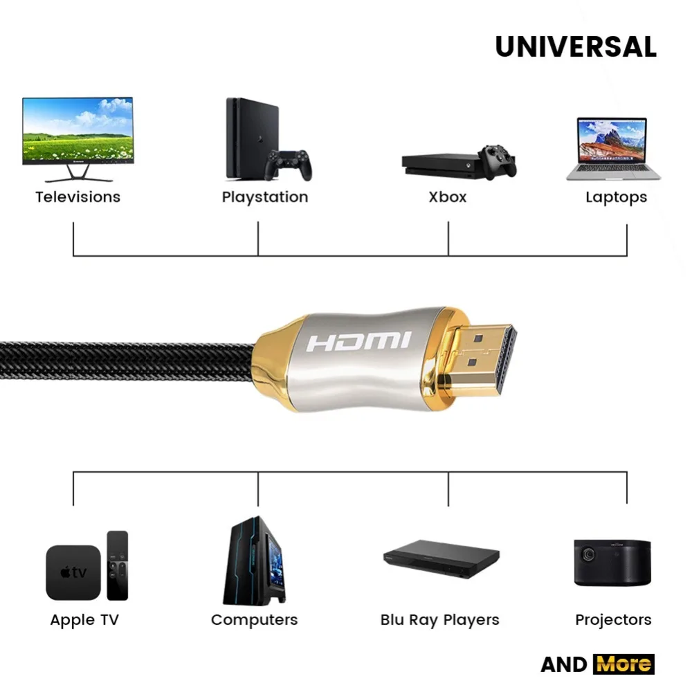 Сверхвысокоскоростной кабель HDMI поддерживает пропускную способность 48 Гбит/с, поддерживаемую несжатой функцией HDMI 2,1. EMI, излучаемый кабелем, чрезвычайно низок, обратно совместим с более ранней версией спецификации HDMI, а также может использоваться для существующих устройств HDMI.