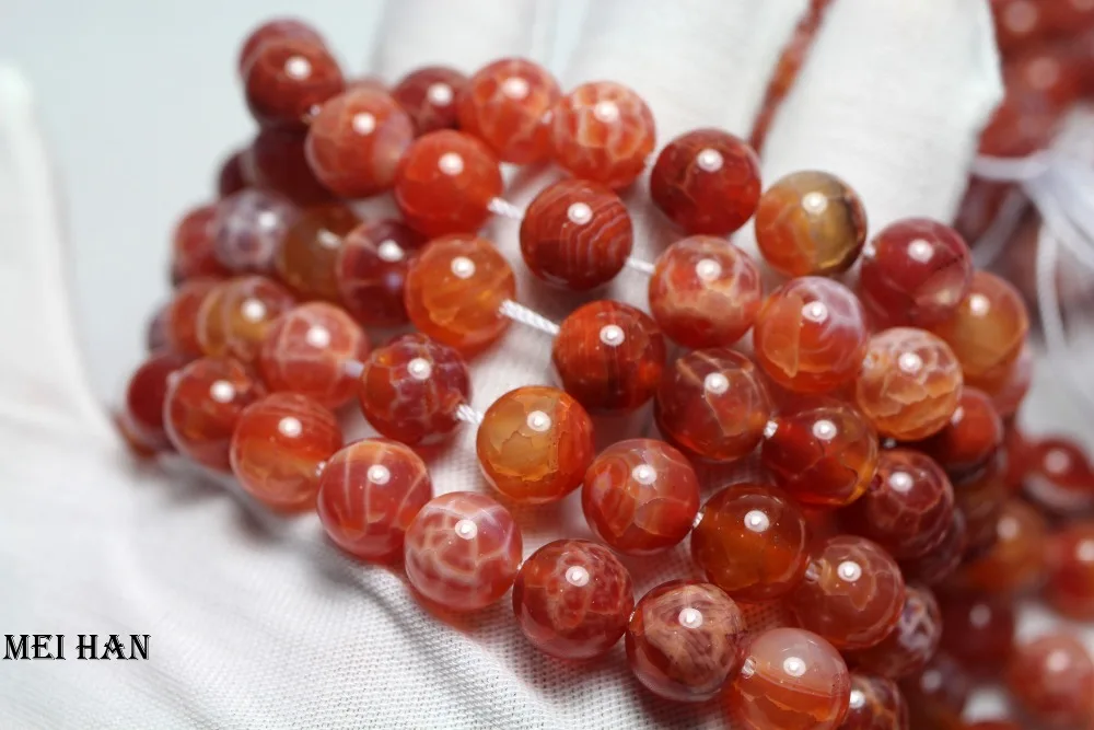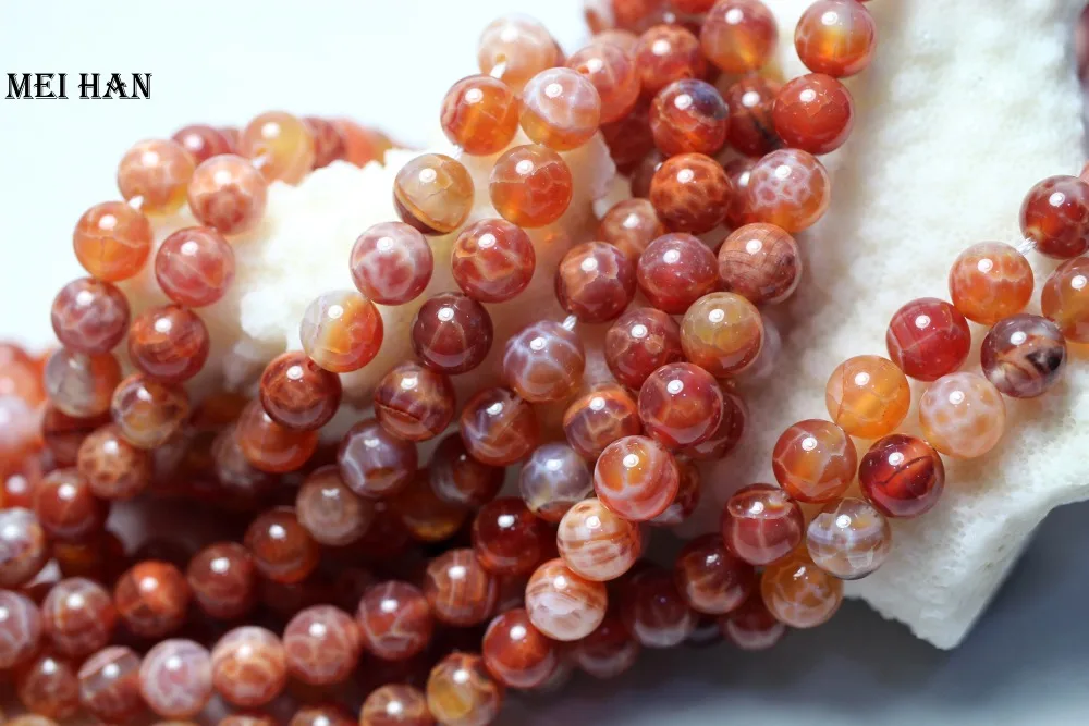 Натуральный огненный агат Гладкий Круглый бисер для изготовления ювелирных браслетов своими руками