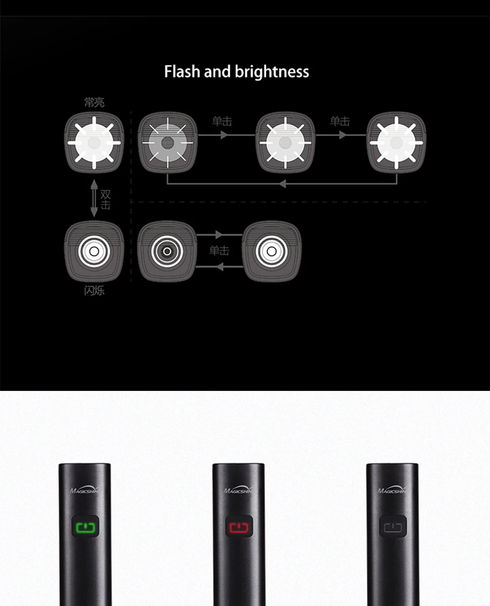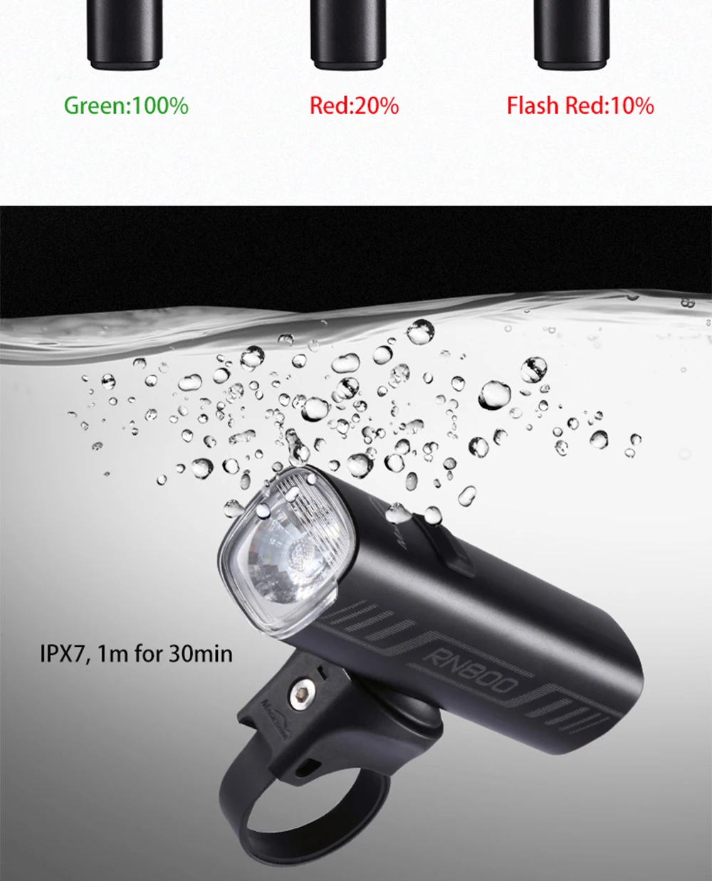 Бренд: Magicshine Происхождение: Китай Модель: RN900 Размер: 107*31*31 мм Яркость: 900 Емкость аккумулятора: 4000 мАч Порт зарядки: Typc-C Время работы: 1,4-11 часов Вес: 172 г Водонепроницаемость: IPX7