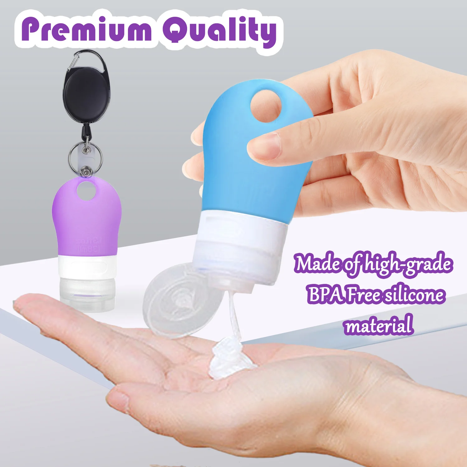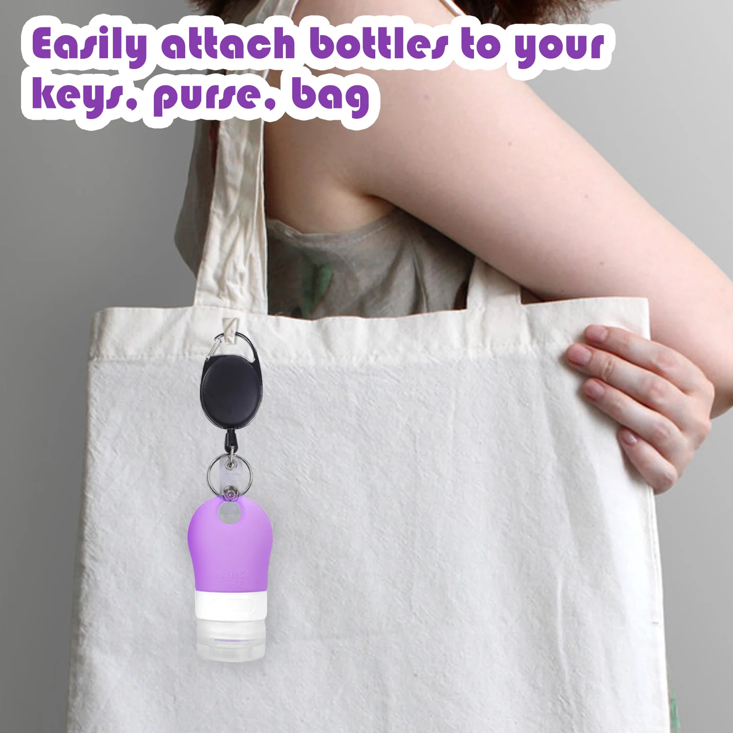 Каждая силиконовая бутылочка для путешествий поставляется с выдвижным держателем для бейджа, который позволяет повесить бутылку на кошелек, ключ или сумку, чтобы избежать потери, не нужно снимать ее при использовании, вам просто нужно потянуть ремешок прямо, чтобы открыть бутылку и мыть руки в любое время и в любом месте
