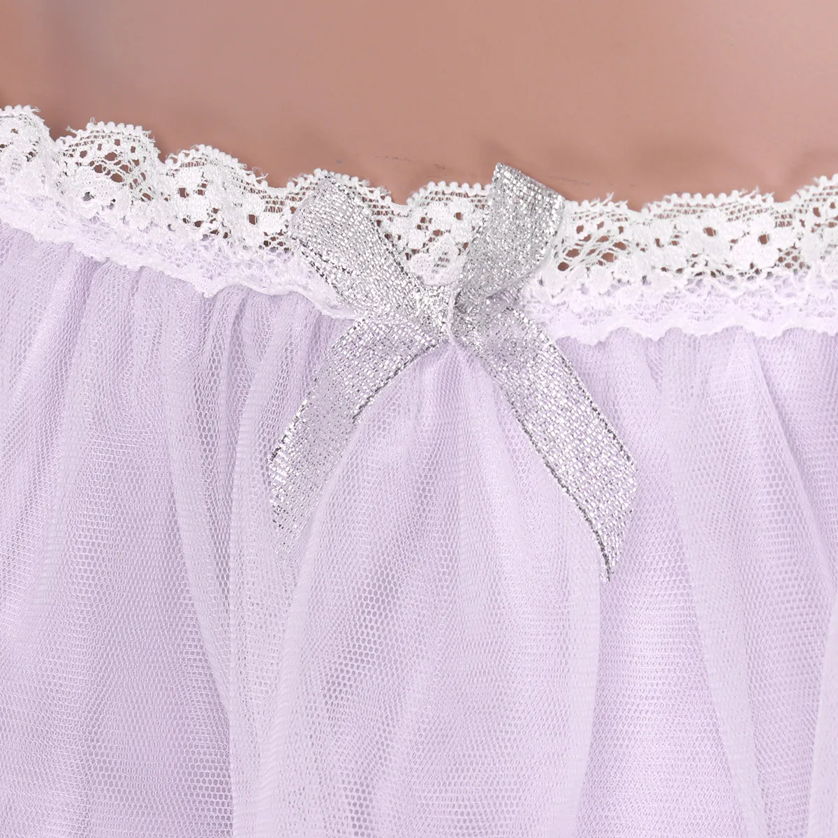 Средняя посадка с эластичным поясом, прикрепляется двухслойная прозрачная сетка, кружевная отделка, милый и милый.
