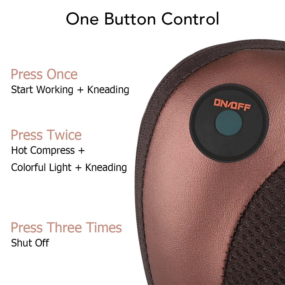 1. Встроенные 8 массажных шариков обеспечат реалистичность при замешивании и натирании для эффективного облегчения хронических страданий, боли и снятия стресса и давления с шеи, плеч, талии, живота, мышцы ног и т. д. 2. Функция умного горячего компресса способствует циркуляции крови и активизирует деятельность клеток для достижения лучшего эффекта стимуляции, а в сочетании с равномерным давлением и постоянной поддержкой, он с легкостью поможет вам расслабиться и избавиться от усталости тела во время работы или вождения. 3. Управление одной кнопкой, быстрое включение/выключение питания и переключение режимов в соответствии с вашими требованиями, он также автоматически отключится через 15 минут работы с функцией таймера, энергосбережение и экологичность. 4. Эргономичная подушка выполнена из искусственной кожи удобной и дышащей сетки, легко доставляет приятные на ощупь ощущения для всесезонного наслаждения, прочная и долговечная. 5. Поставляется с высоким эластичным ремешком на спине, он может надежно зафиксировать подушку на спинке стула, экономя место и удобно. 6. Мощный двигатель и 4-колесный привод обеспечат высокую производительность, защита от перегрева еще больше повысит безопасность использования для более длительного срока службы, он автоматически отключится, чтобы избежать перегрева. 7. Поддерживает как автомобильные, так и домашние приложения, вы можете удобно получить доступ к расслабляющему массажу независимо от того, когда вы за рулем автомобиля, вздремнуть дома, в офисе или даже во время путешествия.