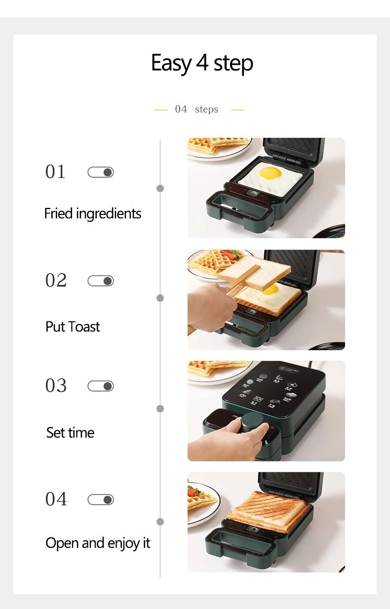 Электрический сэндвич-мейкер с таймером, вафельница, тостер для выпечки, мультикер, машина для завтрака, песочница, торт для выпечки 600 Вт