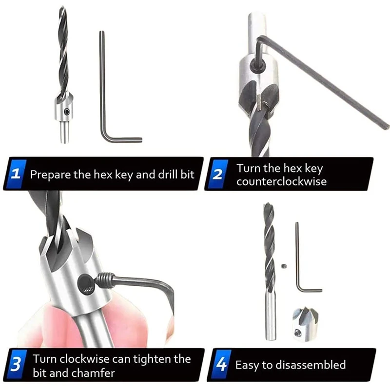 Отлично подходит для погружения отверстий 90 градусов в дерево и мягкие металлы потайные винты и фиксаторы. Подходит для DIY, домашнего и общего строительства/инженерного использования