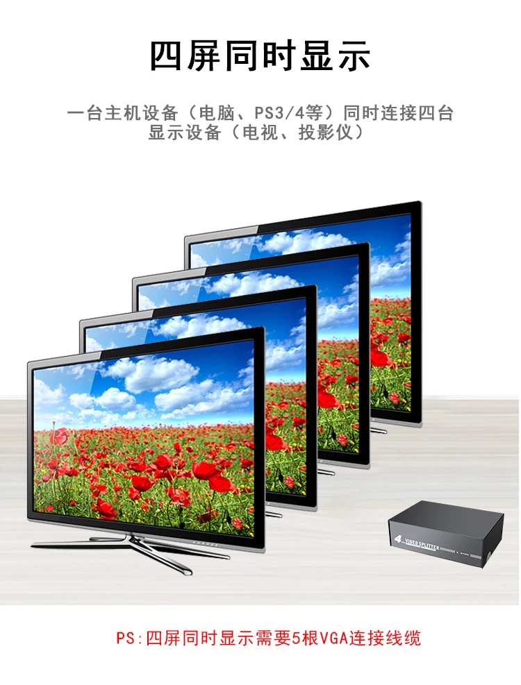 Vga сплиттер одна точка четыре компьютера монитор ноутбук проектор Сплит экран одна точка четыре 1 в 4 out