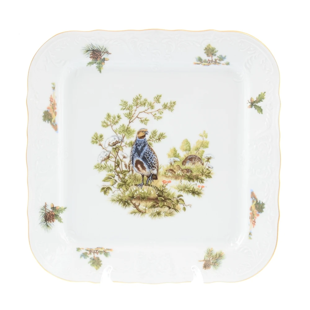 Поднос Bernadotte Охота 26 см Каждый предмет из коллекции чешской Охоты, как отдельное произведение искусства в картинной галерее. Только этой галереей может стать ваш праздничный стол. Почувствуйте себя настоящим художником, нанося, как мазки на картину, предметы из коллекции чешского бренда на белоснежную скатерть на столе. На этот раз в роли «картины» - поднос с изображением милой лесной птички, заблудшей в лесные заросли.