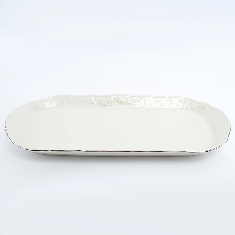 Поднос Bernadotte Платиновый узор Be-Ivory 37 см Кофе в постель или коронное блюдо к торжественному столу по поводу праздника? Все равно что! Главное – поднос из коллекции чешского фарфора Bernadotte Платиновый узор Be-Ivory позволит подать любое блюдо и сделать это по-особому, так что любой гость почувствует себя желанным, а содержимое подноса обретет еще большую ценность. Посуда из чешского фарфора: пусть каждый день будет праздник!